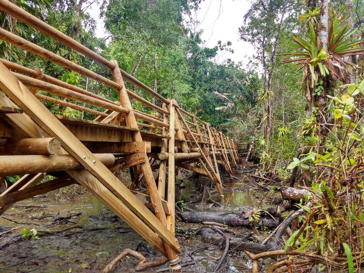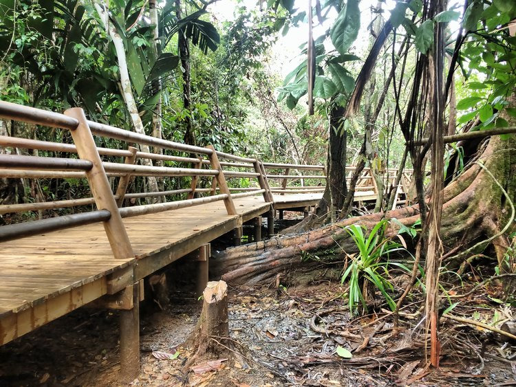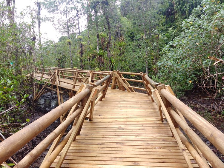 Con un recorrido total de aproximadamente 1500 metros, (1.000 metros en la etapa 1 y 500 metros en la etapa dos), atraviesa las zonas boscosas, pantanosas, los manglares y la zona selvática, logrando mostrar la gran variedad de especies de flora y fauna que se encuentran en el PNN Utría.