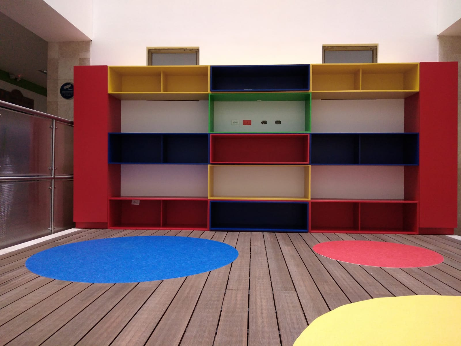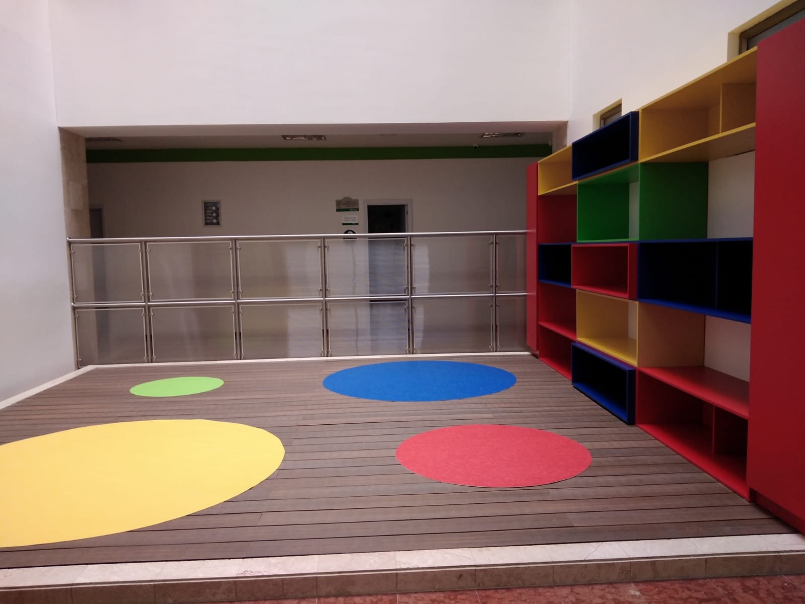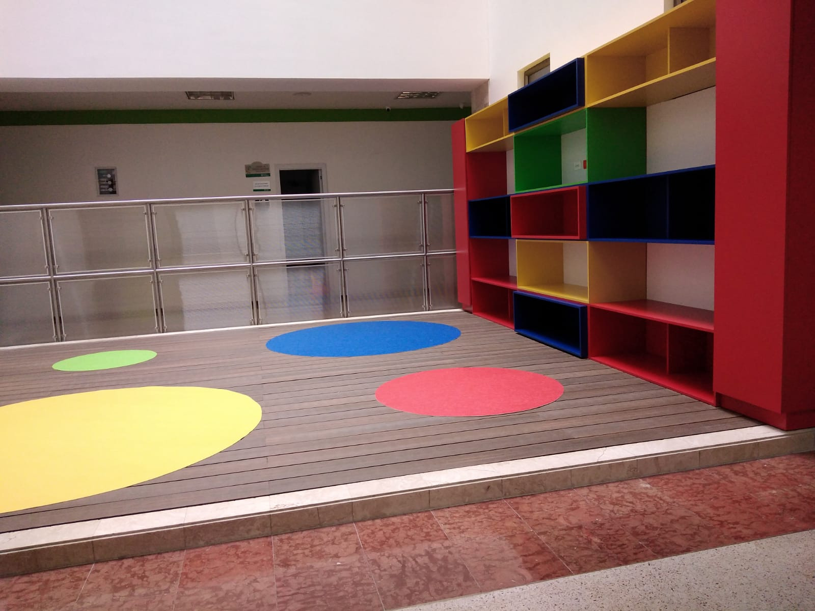 En cumplimiento a lo anterior conjuntamente con la misión y visión de la institución, y a la necesidad de prestar un mejor servicio, se lleva a cabo la obra civil para la adecuación de uno de los patios interiores de la Clínica en la zona de Pediatría, donde se desarrolla una plataforma tipo deck en madera WPC con tapetes circulares en piso Optimise 70 de tráfico alto, un mueble en fórmica en colores vivos para dinamizar el área y un pasamanos para dividir el área del deck y el pasillo principal. Un espacio para los niños del área de pediatría.
