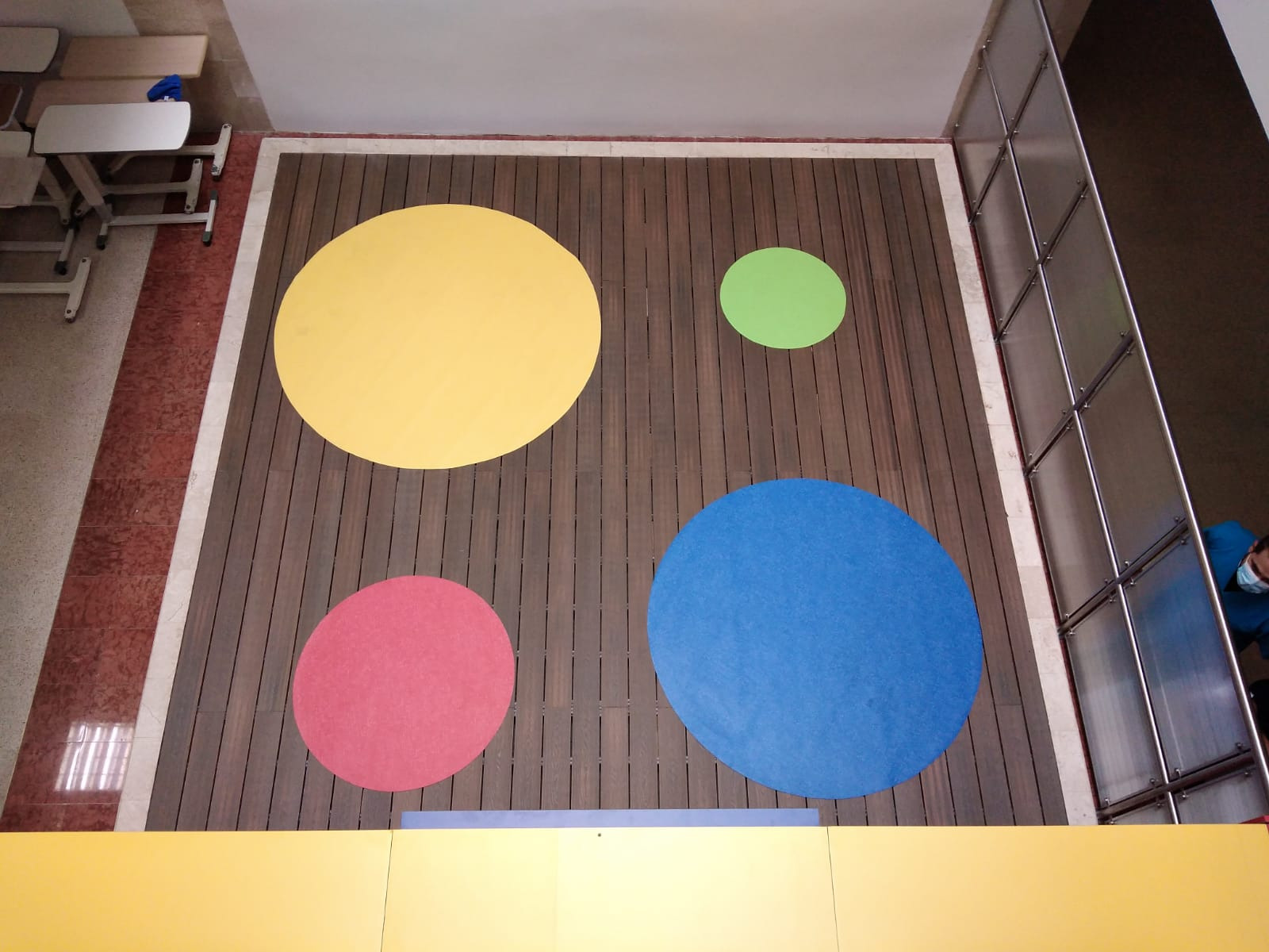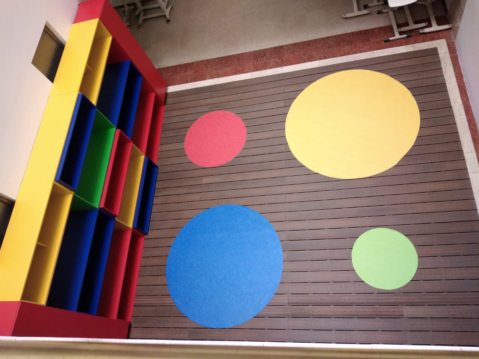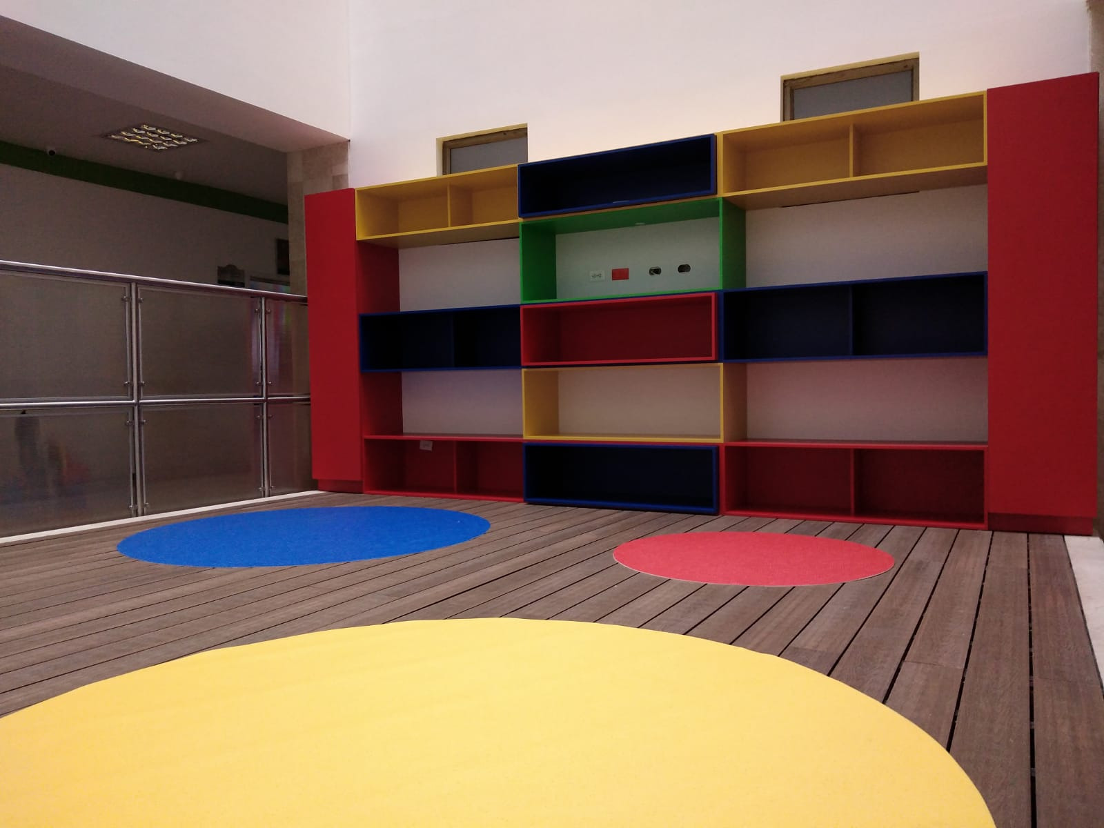 En cumplimiento a lo anterior conjuntamente con la misión y visión de la institución, y a la necesidad de prestar un mejor servicio, se lleva a cabo la obra civil para la adecuación de uno de los patios interiores de la Clínica en la zona de Pediatría, donde se desarrolla una plataforma tipo deck en madera WPC con tapetes circulares en piso Optimise 70 de tráfico alto, un mueble en fórmica en colores vivos para dinamizar el área y un pasamanos para dividir el área del deck y el pasillo principal. Un espacio para los niños del área de pediatría.