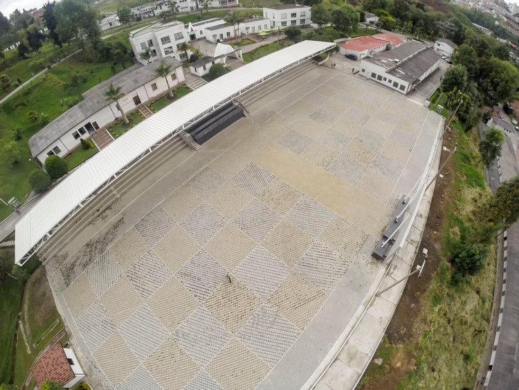 En la cocina y en el área de servicios del comedor de la escuela, se demolieron los pisos en cerámica existentes, y se realizó la nivelación y la construcción de un nuevo piso en concreto pulido, se desmontaron las lámparas, lavaplatos, mobiliario, puertas, ventanas, cielo raso falso, muro en sistema liviano existentes para la recuperación y el mantenimiento general de las instalaciones, demoliendo algunos de los muros para expandir áreas de servicio de la cocina. Se ejecutaron los diseños estructurales para la cubierta VIP del comedor de estudiantes, el diseño eléctrico, y el diseño acústico de la plaza de armas. Enchapes de pisos en cerámica color café, diseños estructurales y cimentación de la tarima y pódium, taludes a la plaza de armas y canchas del área polideportiva.