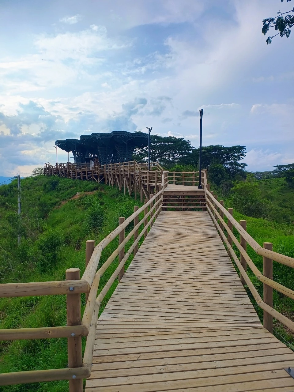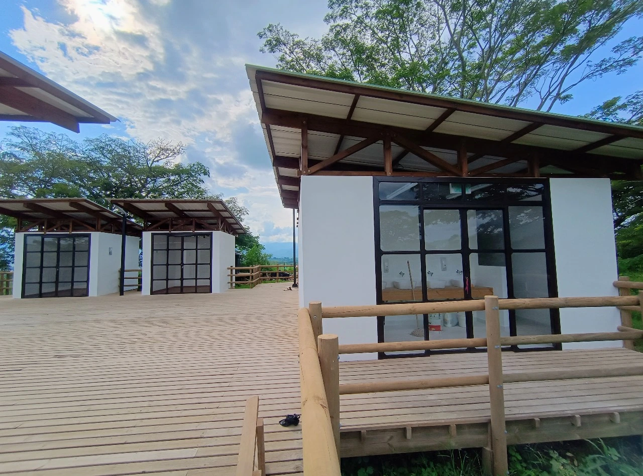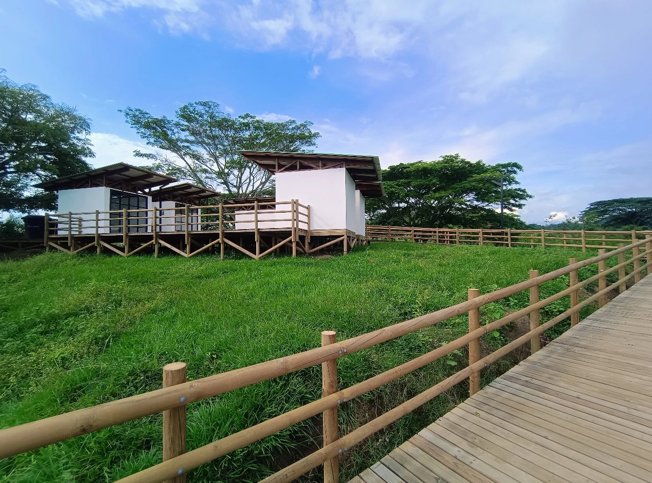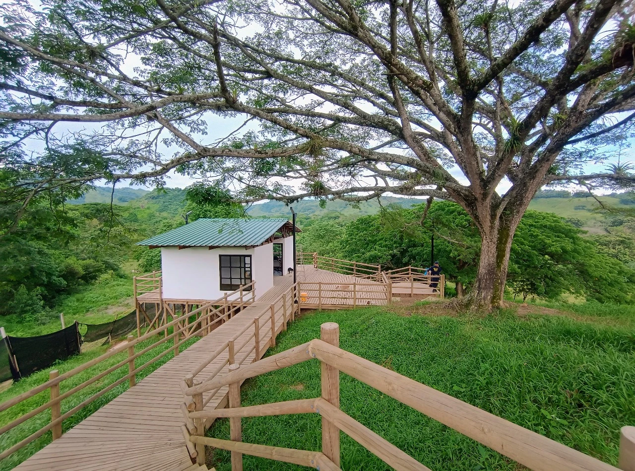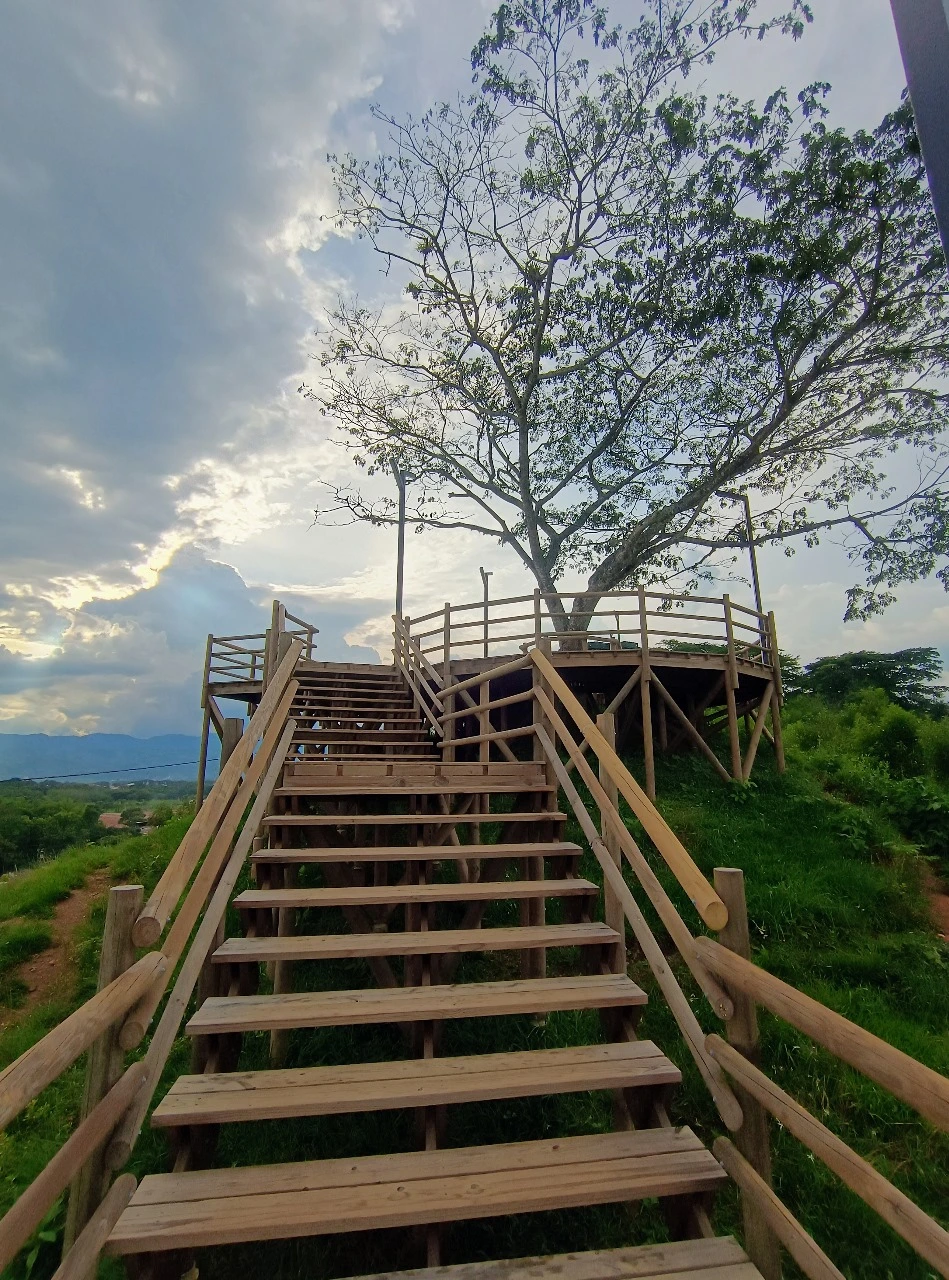 • Los miradores o plataformas: son 8 terrazas con un área aproximada de 900 m2, es el mayor atractivo y foco del proyecto al ser una secuencia de terrazas en madera que se mimetizan con el entorno y que además de poder disfrutar las visuales que nos ofrece el sitio, cuenta con módulos de ventas que soportan la estadía para el proyecto y unos elementos arquitectónicos en forma de Árbol muy llamativos que generan sobra y lugares de estancia temporal y transitorio a los visitantes.