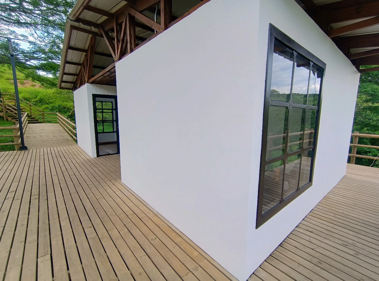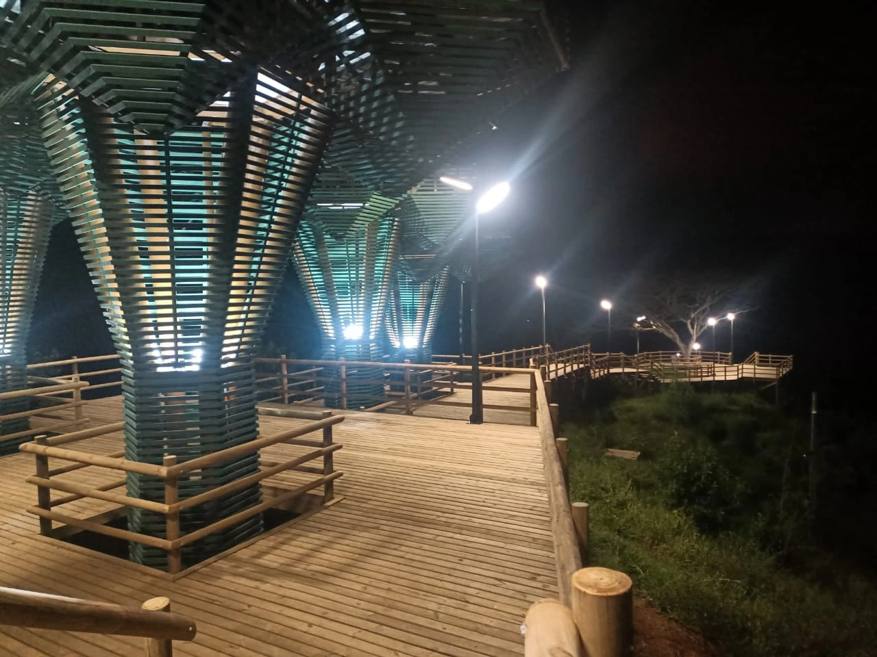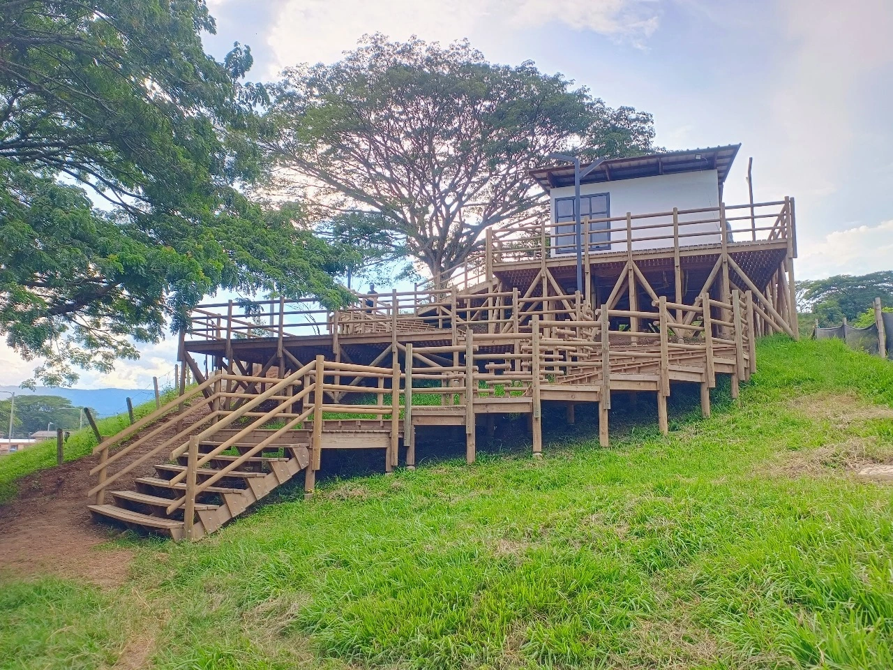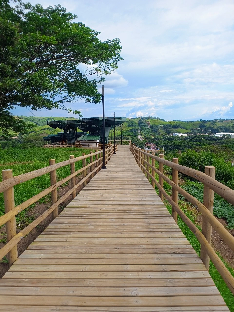 • Los miradores o plataformas: son 8 terrazas con un área aproximada de 900 m2, es el mayor atractivo y foco del proyecto al ser una secuencia de terrazas en madera que se mimetizan con el entorno y que además de poder disfrutar las visuales que nos ofrece el sitio, cuenta con módulos de ventas que soportan la estadía para el proyecto y unos elementos arquitectónicos en forma de Árbol muy llamativos que generan sobra y lugares de estancia temporal y transitorio a los visitantes.